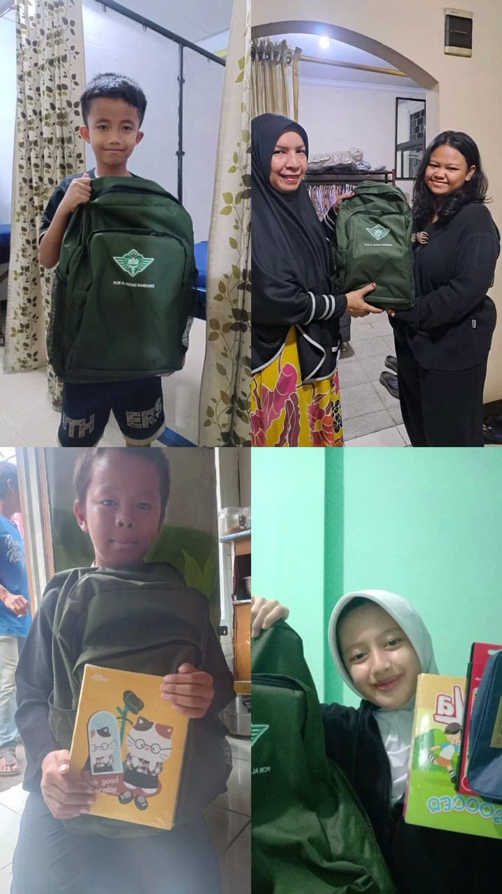 Alhamdulillah dibulan Juli s/d Agustus 2025 PC Wanita Al Irsyad Kota Bandung membagikan 100 tas dan perlengkapan alat tulis untuk Anak-anak Yatim, anak-anak kurang mampu dan anak-anak yg orang tuanya difabel Netra SD, SMP DAN SMA